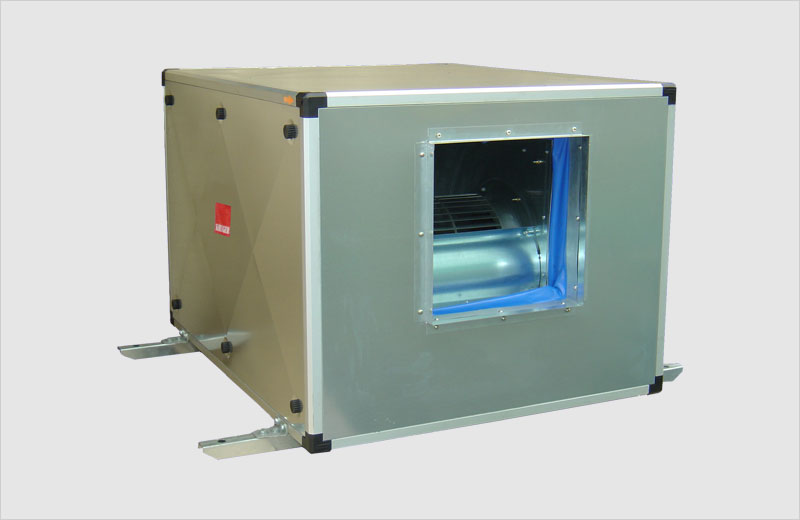 3、箱内风机采用后倾式离心风轮,叶片为冷轧厚钢板,效率高、具有不易粘污物和不易过载的特性。